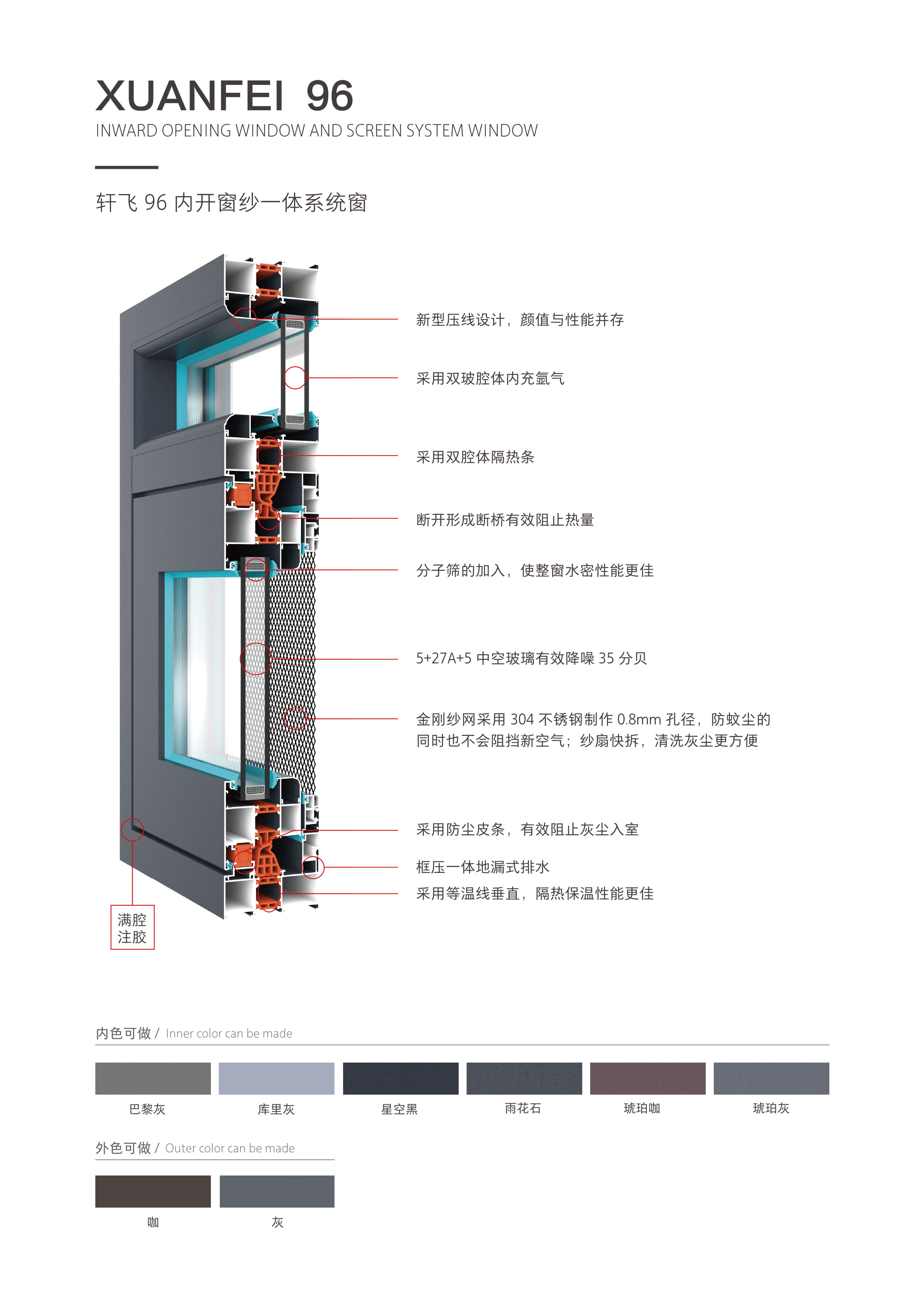 軒飛96內(nèi)開窗紗一體系統(tǒng)窗